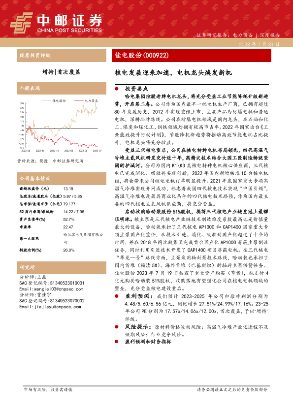 【中邮证券】【20230731】20230731-中邮证券-佳电股份-000922.SZ-核电发展迎来加速,电机龙头焕发新机-25页