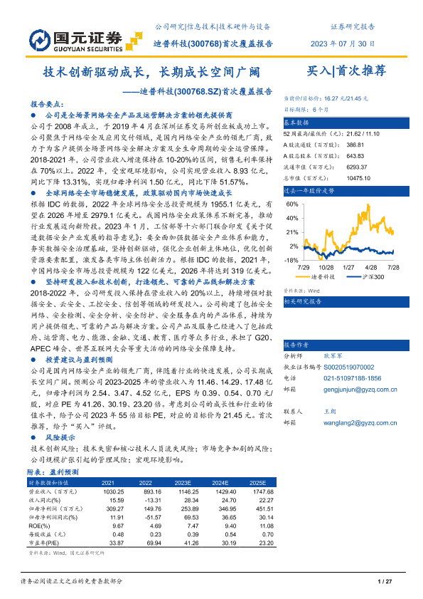 【国元证券】【20230730】迪普科技(300768.SZ)首次覆盖报告:技术创新驱动成长,长期成长空间广阔-27页