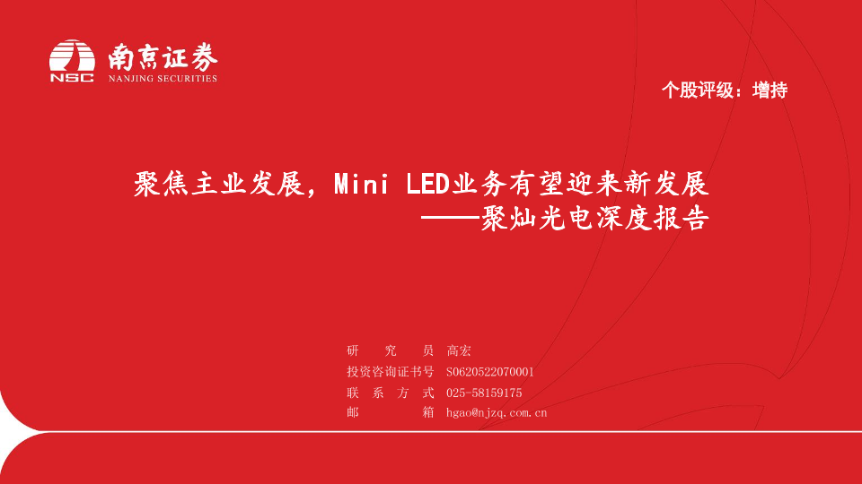 【南京证券】【20230726】聚灿光电深度报告:聚焦主业发展,Mini LED业务有望迎来新发展-21页