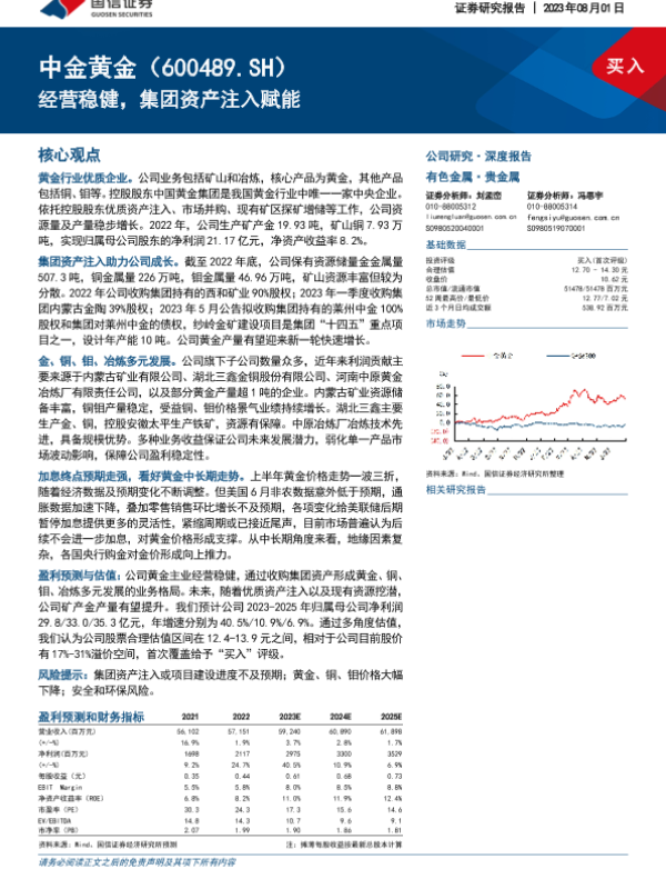 中金黄金 有色金属 证券分析 资产注入 黄金行业