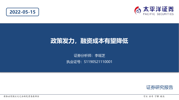 【太平洋证券】【20220515】基建行业:政策发力,融资成本有望降低-20页
