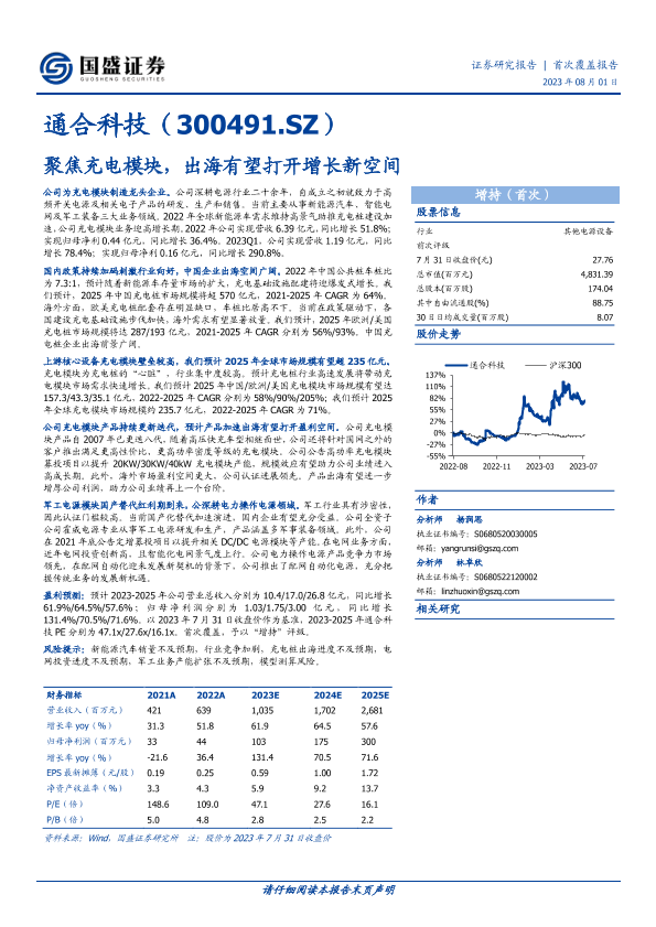 【国盛证券】【20230801】通合科技-300491.SZ-聚焦充电模块,出海有望打开增长新空间-34页