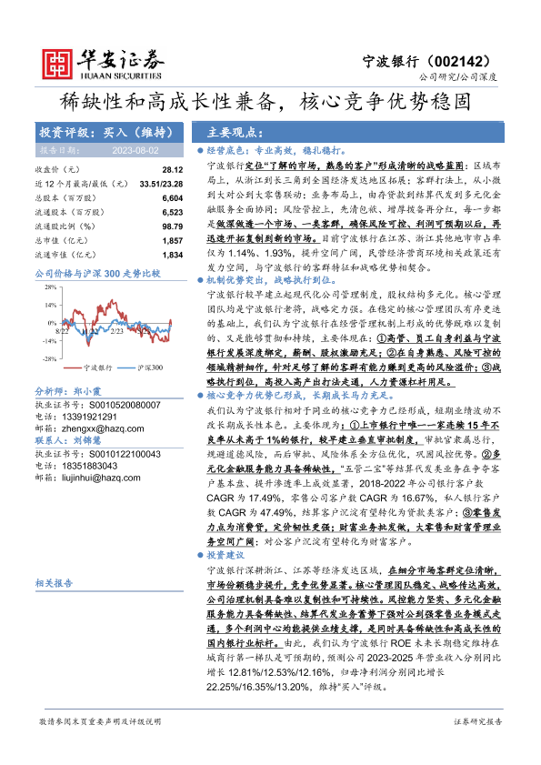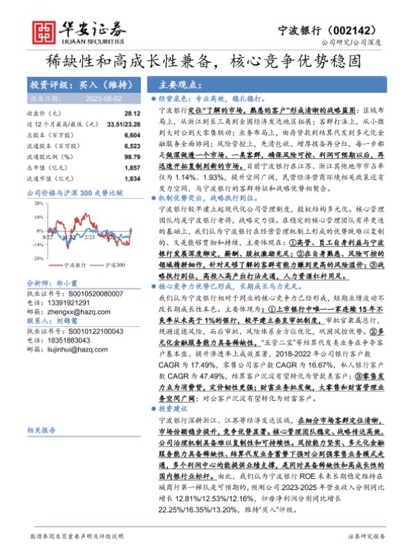 【华安证券】【20230802】20230802-华安证券-宁波银行-002142.SZ-稀缺性和高成长性兼备,核心竞争优势稳固-31页