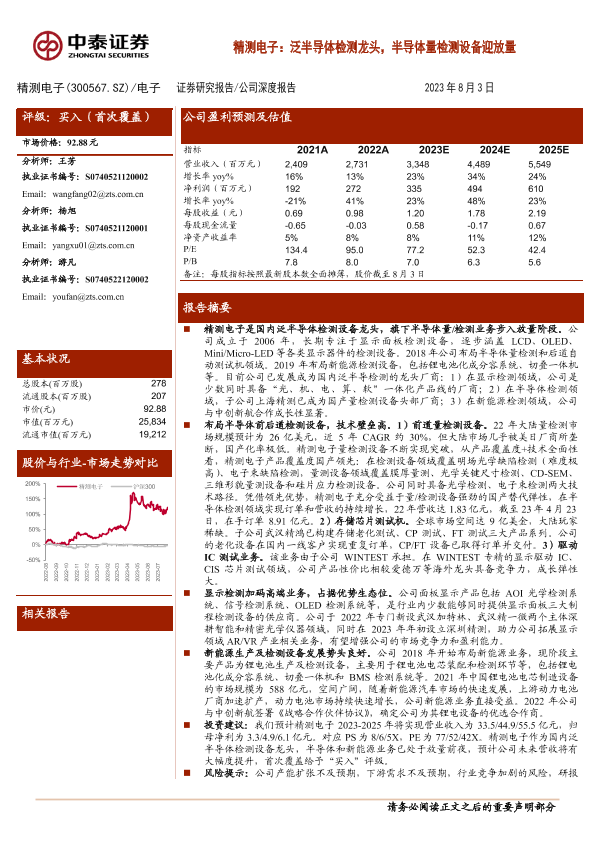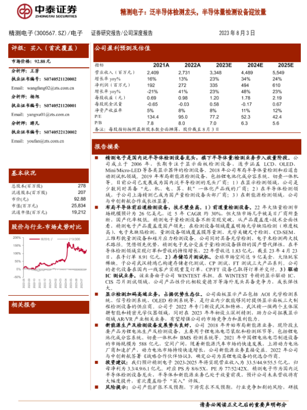 【中泰证券】【20230803】精测电子:泛半导体检测龙头,半导体量检测设备迎放量-32页