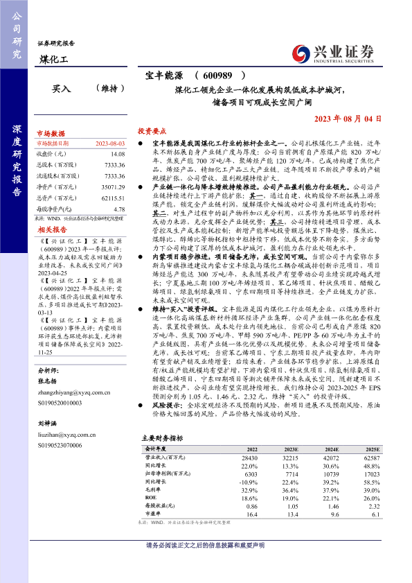 【兴业证券】【20230804】煤化工领先企业一体化发展构筑低成本护城河,储备项目可观成长空间广阔-30页