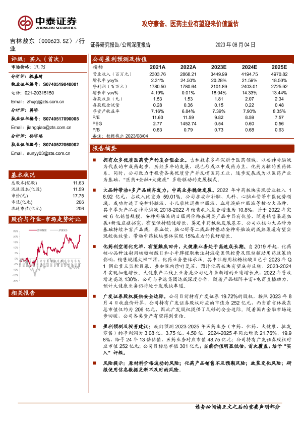 【中泰证券】【20230804】20230804-中泰证券-吉林敖东-000623.SZ-攻守兼备,医药主业有望迎来价值重估-27页
