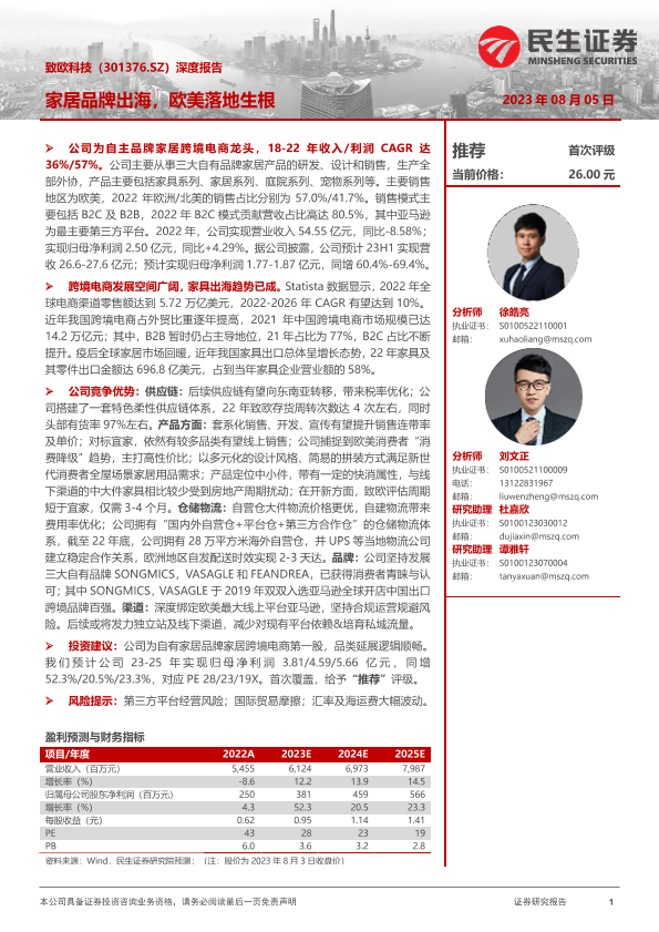 【民生证券】【20230805】致欧科技(301376.SZ)深度报告:家居品牌出海,欧美落地生根-55页