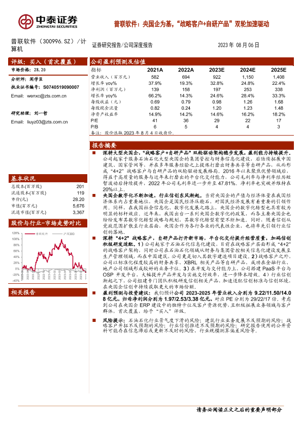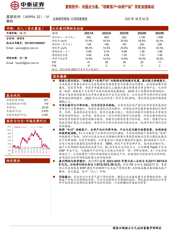 【中泰证券】【20230806】普联软件:央国企为基,“战略客户+自研产品”双轮加速驱动-35页