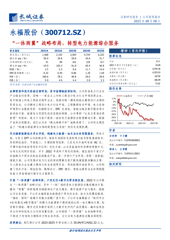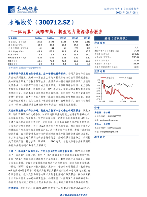 【长城证券】【20230808】20230808-长城证券-永福股份-300712.SZ-“一体两翼”战略布局,转型电力能源综合服务-27页