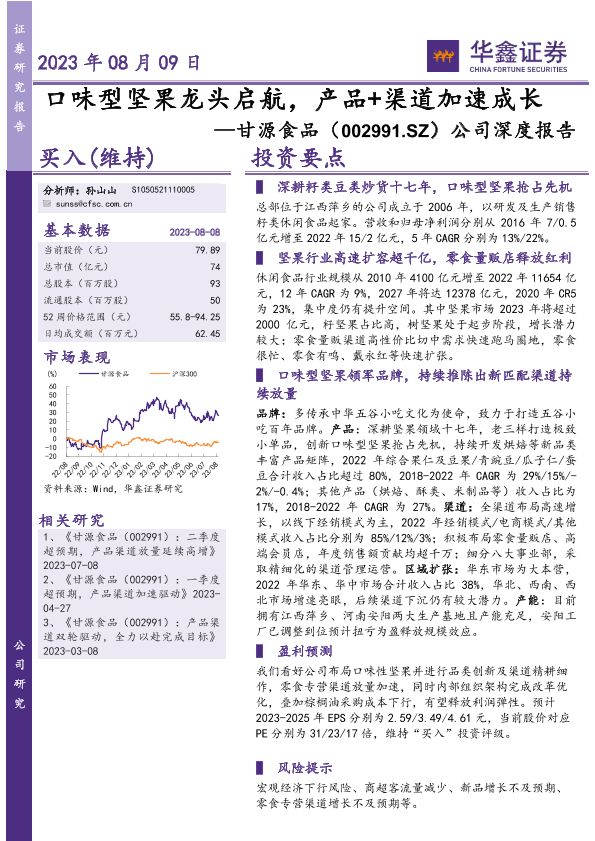 【华鑫证券】【20230809】20230809-华鑫证券-甘源食品-002991.SZ-公司深度报告:口味型坚果龙头启航,产品+渠道加速成长-44页