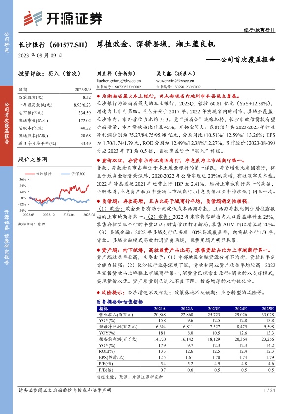 【开源证券】【20230809】20230809-开源证券-长沙银行-601577.SH-公司首次覆盖报告:厚植政金、深耕县域,湘土蕴良机-24页