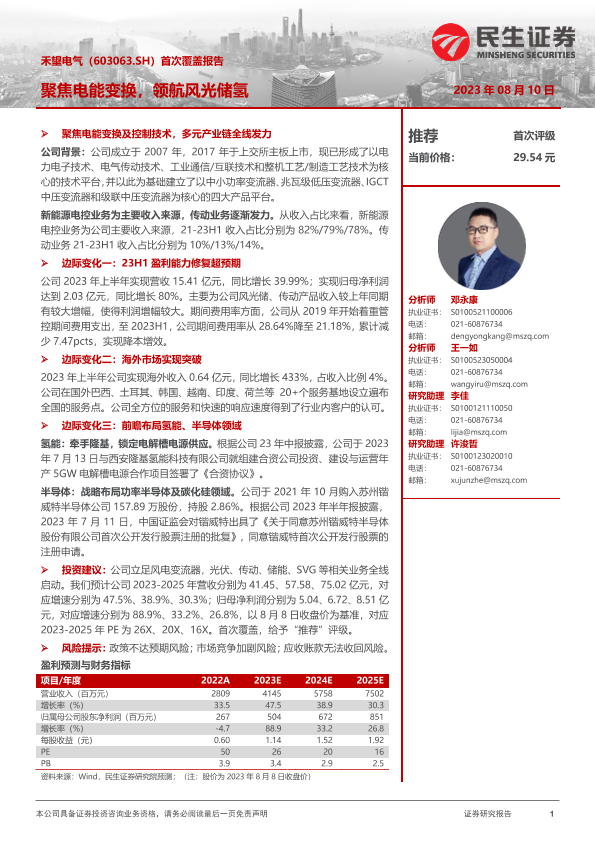 【民生证券】【20230810】20230810-民生证券-禾望电气-603063.SH-首次覆盖报告:聚焦电能变换,领航风光储氢-21页