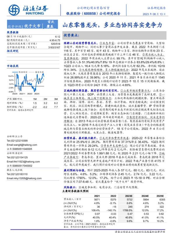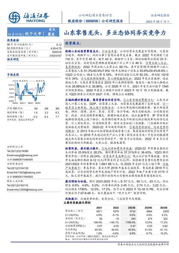 【海通证券】【20230813】银座股份-600858.SH-山东零售龙头,多业态协同夯实竞争力-22页