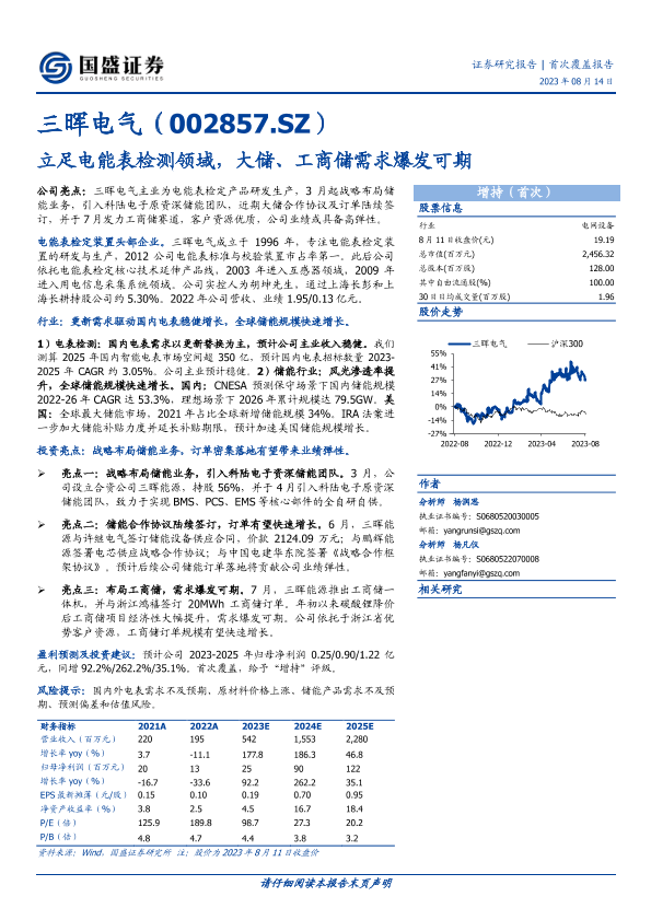 【国盛证券】【20230814】三晖电气(002857.SZ)立足电能表检测领域,大储、工商储需求爆发可期-22页