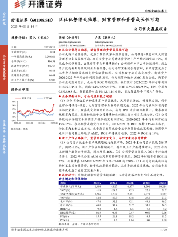 【开源证券】【20230814】20230814-开源证券-财通证券-601108.SH-公司首次覆盖报告:区位优势得天独厚,财富管理和资管成长性可期-25页