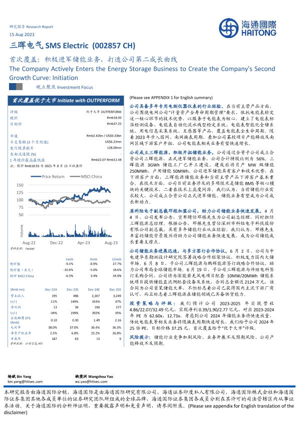 【海通国际】【20230815】三晖电气-002857.SZ-首次覆盖:积极进军储能业务,打造公司第二成长曲线-24页