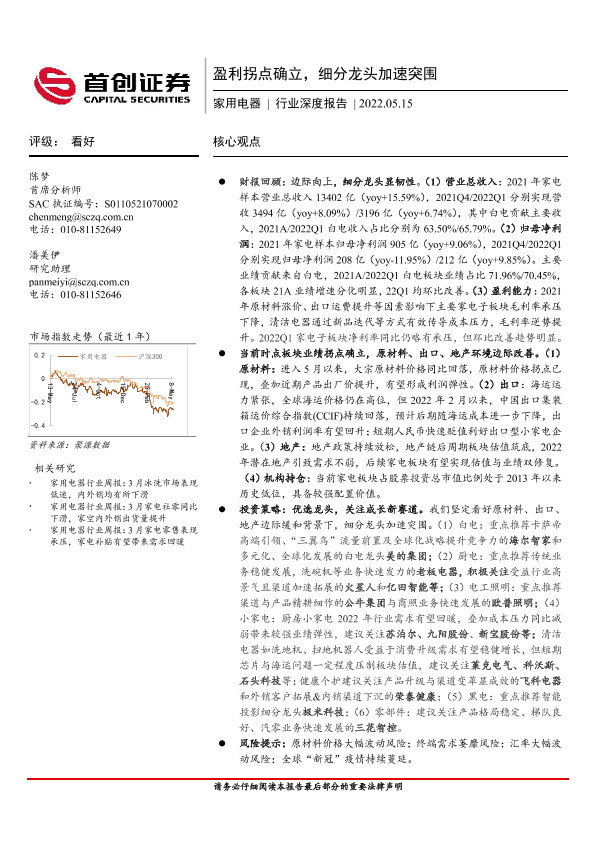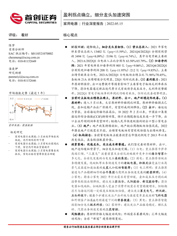 【首创证券】【20220515】家用电器行业深度报告:盈利拐点确立,细分龙头加速突围-30页