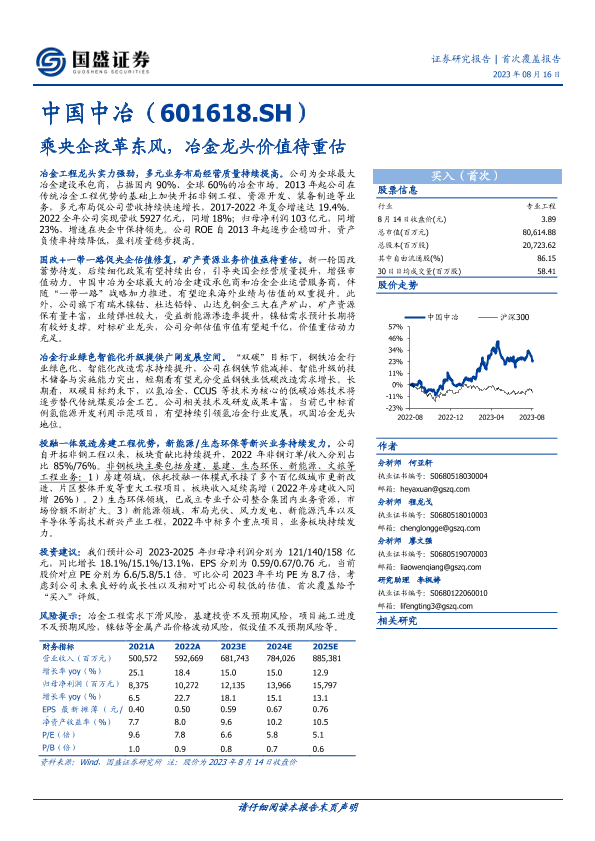 【国盛证券】【20230816】中国中冶-601618.SH-乘央企改革东风,冶金龙头价值待重估-27页