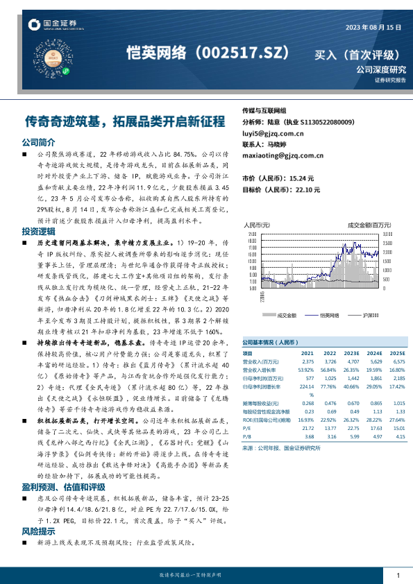 【国金证券】【20230815】20230815-国金证券-恺英网络-002517.SZ-传奇奇迹筑基,拓展品类开启新征程-24页