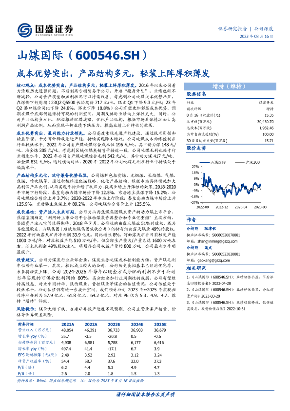 【国盛证券】【20230816】山煤国际(600546.SH)成本优势突出,产品结构多元,轻装上阵厚积薄发-20页