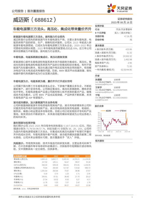 【天风证券】【20230816】威迈斯-688612.SH-车载电源第三方龙头,高压化、集成化带来量价齐升-28页