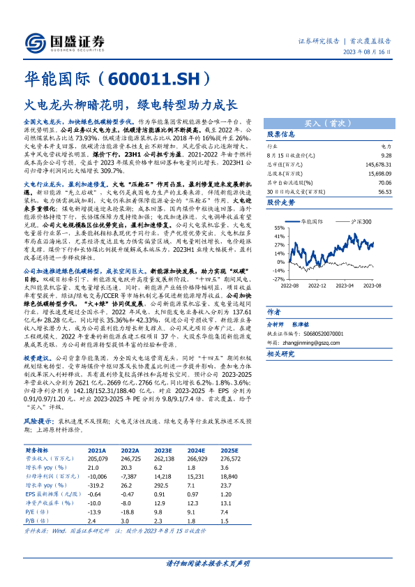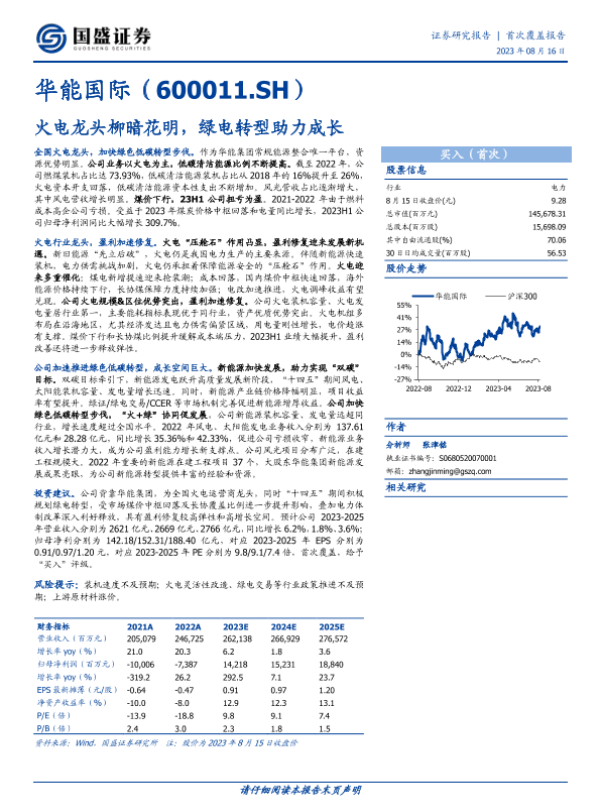 【国盛证券】【20230816】华能国际(600011.SH)火电龙头柳暗花明,绿电转型助力成长-33页