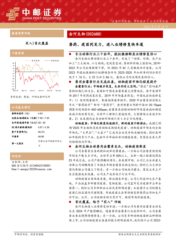 【中邮证券】【20230816】金河生物-002688.SZ-兽药、疫苗同发力,进入业绩修复快车道-24页
