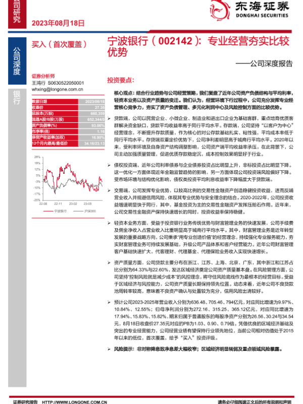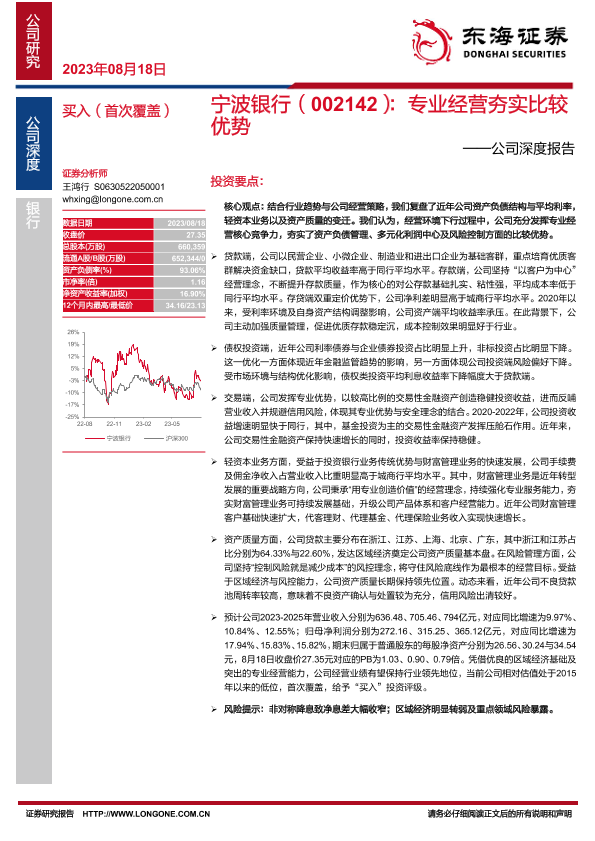 【东海证券】【20230818】宁波银行(002142):专业经营夯实比较优势——公司深度报告-24页