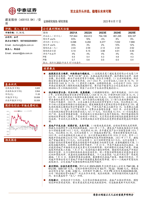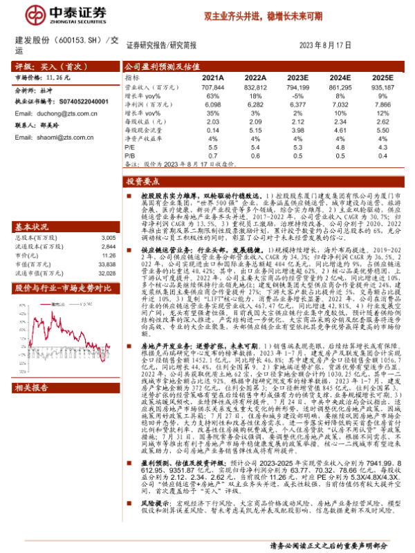 供应链运营 建发股份 房地产开发 盈利预测 股票分析