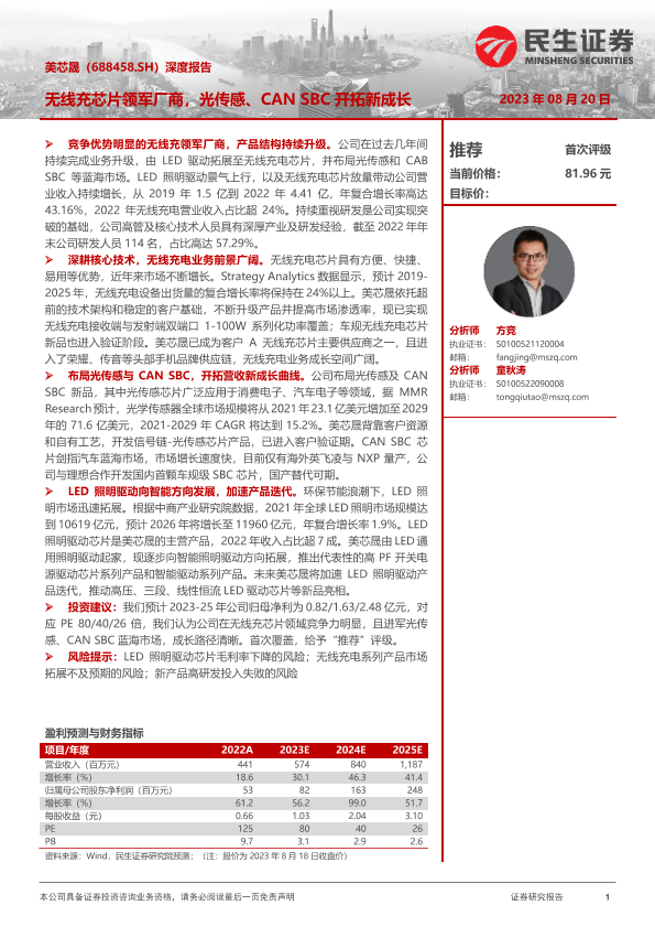【民生证券】【20230820】20230820-民生证券-美芯晟-688458.SH-深度报告:无线充芯片领军厂商,光传感、CAN SBC开拓新成长-42页