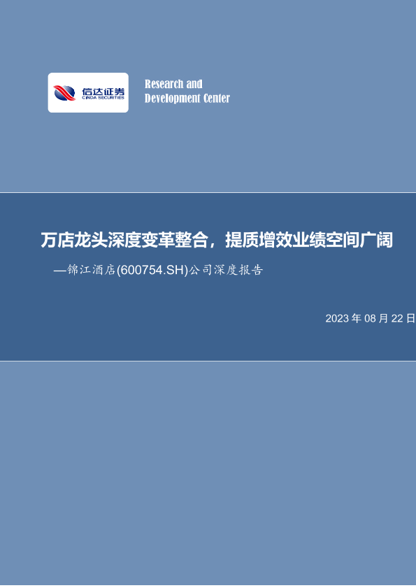 【信达证券】【20230822】20230822-信达证券-锦江酒店-600754.SH-公司深度报告:万店龙头深度变革整合,提质增效业绩空间广阔-39页