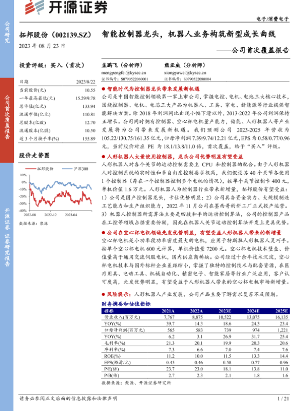 【开源证券】【20230823】20230823-开源证券-拓邦股份-002139.SZ-公司首次覆盖报告:智能控制器龙头,机器人业务构筑新型成长曲线-21页