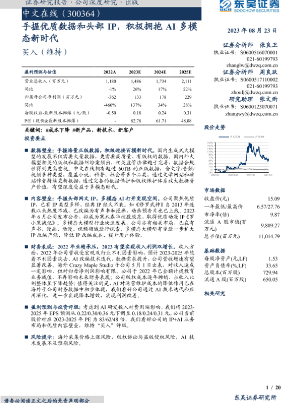 【东吴证券】【20230823】手握优质数据和头部IP,积极拥抱AI多模态新时代-20页
