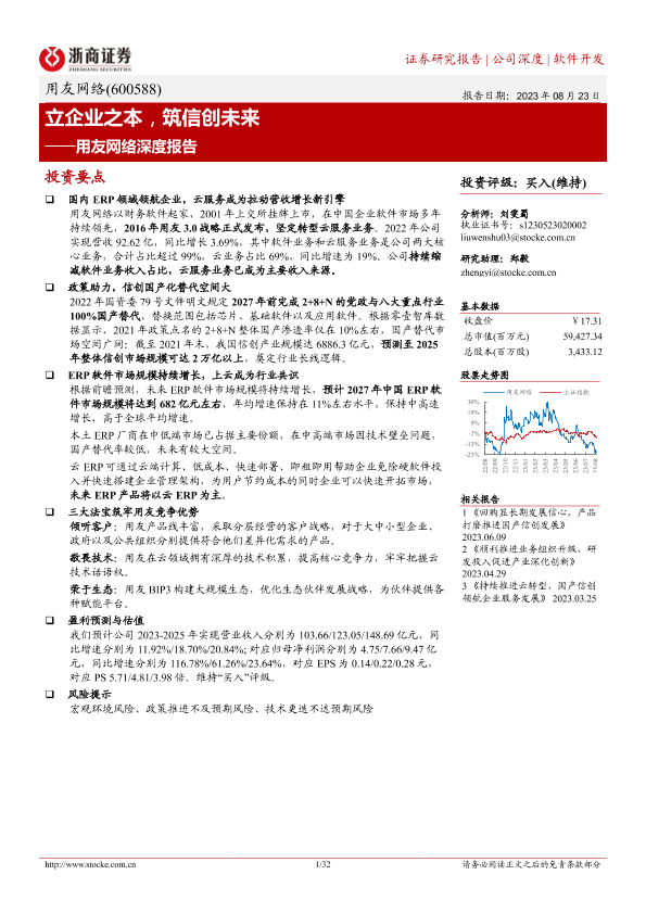 【浙商证券】【20230823】用友网络深度报告:立企业之本,筑信创未来-32页