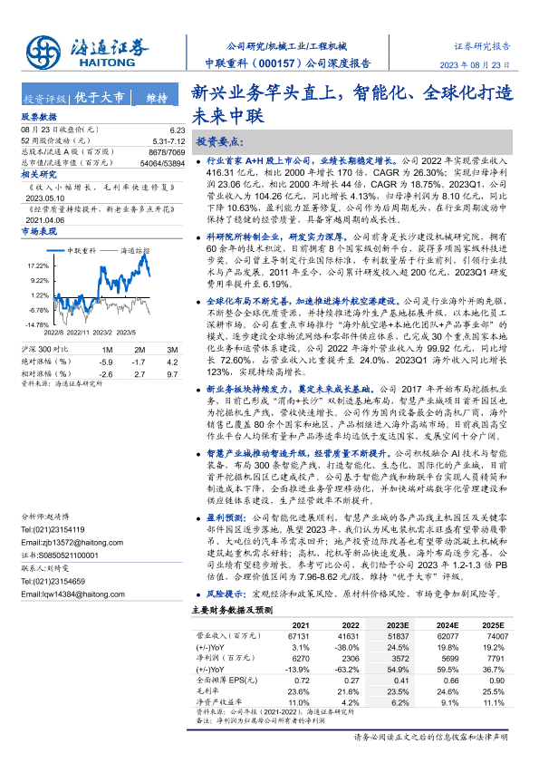 【海通证券】【20230823】20230823-海通证券-中联重科-000157.SZ-公司深度报告:新兴业务竿头直上,智能化、全球化打造未来中联-28页