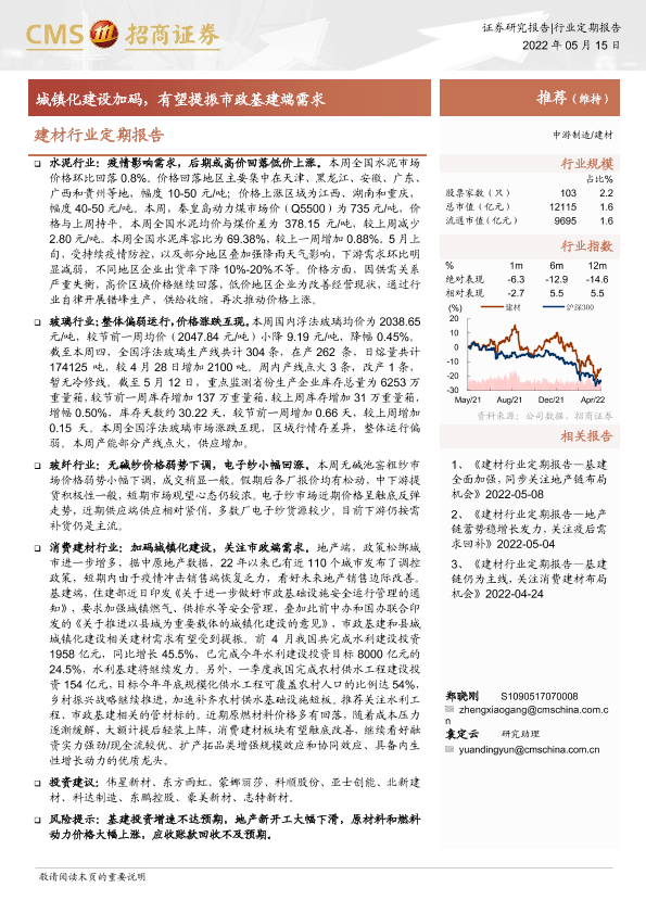 【海通证券】【20220515】建材行业定期报告:城镇化建设加码,有望提振市政基建端需求-25页