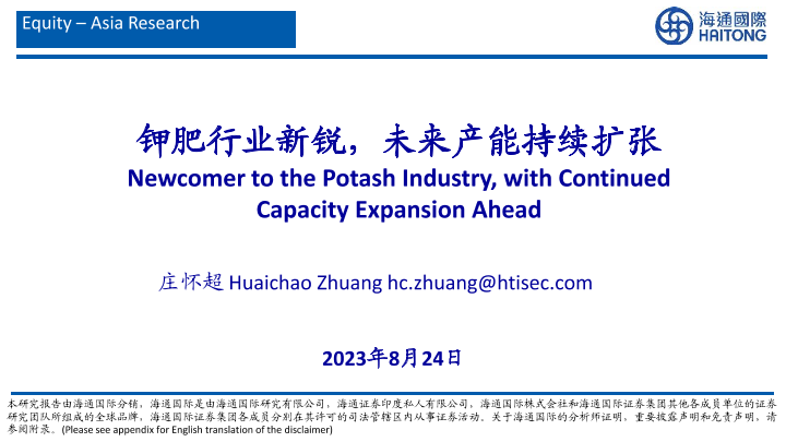 【海通国际】【20230824】亚钾国际-000893.SZ-钾肥行业新锐,未来产能持续扩张-62页
