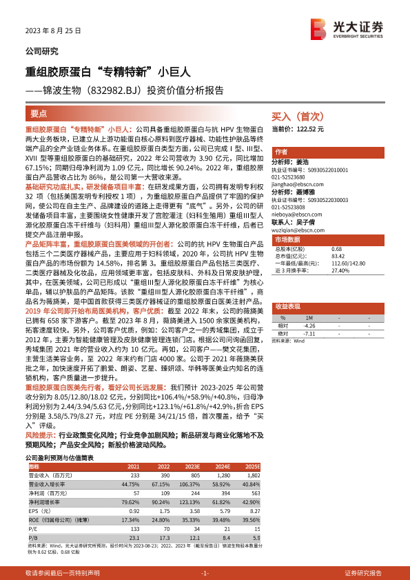 【光大证券】【20230825】重组胶原蛋白“专精特新”小巨人——锦波生物(832982.BJ)投资价值分析报告-48页