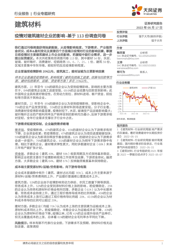 【天风证券】【20220517】建筑材料行业专题研究:疫情对建筑建材企业的影响-25页