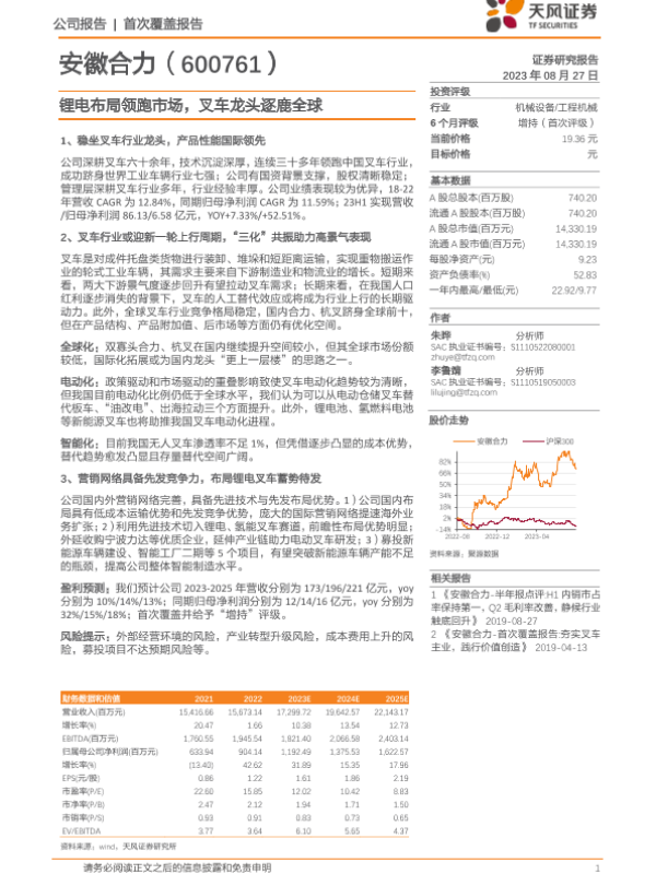 【天风证券】【20230827】锂电布局领跑市场,叉车龙头逐鹿全球-35页