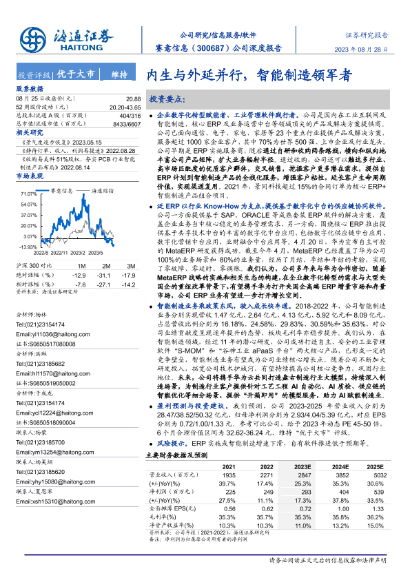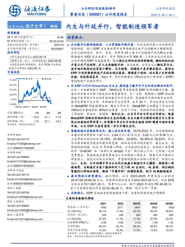 【海通证券】【20230828】赛意信息:内生与外延并行,智能制造领军者-34页