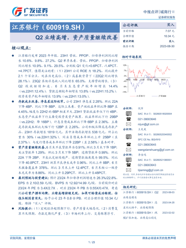 【广发证券】【20230830】江苏银行-600919.SH-Q2业绩高增,资产质量继续改善-23页