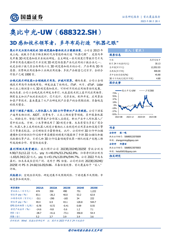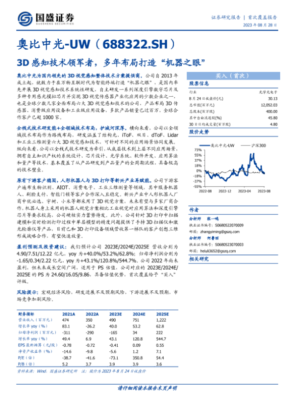 【国盛证券】【20230828】奥比中光-688322.SH-3D感知技术领军者,多年布局打造“机器之眼”-34页