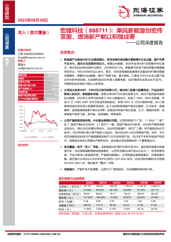 【东海证券】【20230830】宏微科技(688711):乘风新能源创宏伟蓝图、增添新产能以积微成著——公司深度报告-33页