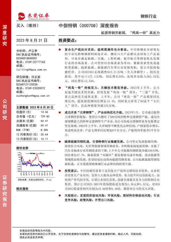 【东莞证券】【20230831】20230831-东莞证券-中信特钢-000708.SZ-深度报告:能源用钢开新局,“两高一特”再发力-29页