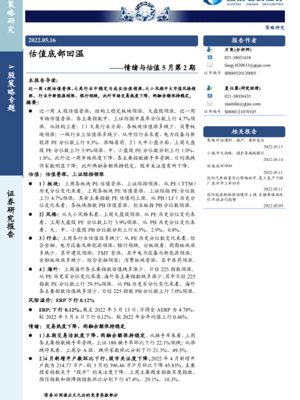 【国泰君安证券】【20220516】情绪与估值5月第2期:估值底部回温-19页