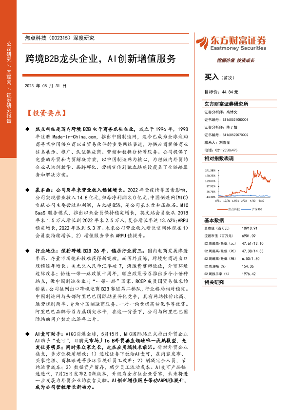 【东方财富证券】【20230831】20230831-东方财富证券-焦点科技-002315.SZ-深度研究:跨境B2B龙头企业,AI创新增值服务-24页