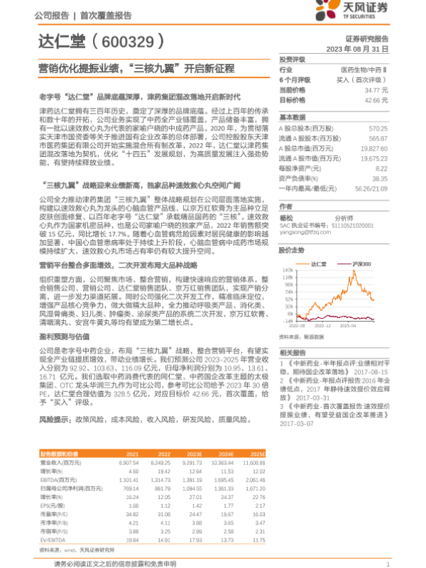 【天风证券】【20230831】20230831-天风证券-达仁堂-600329.SH-营销优化提振业绩,“三核九翼”开启新征程-23页