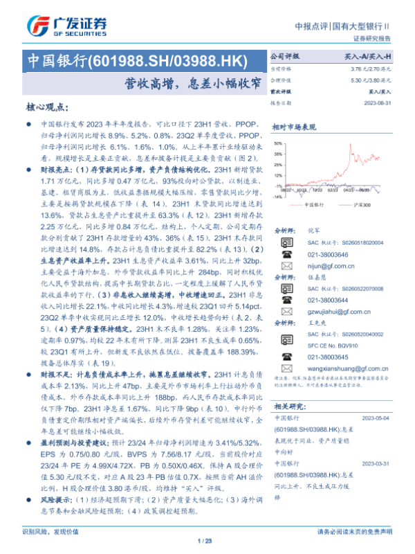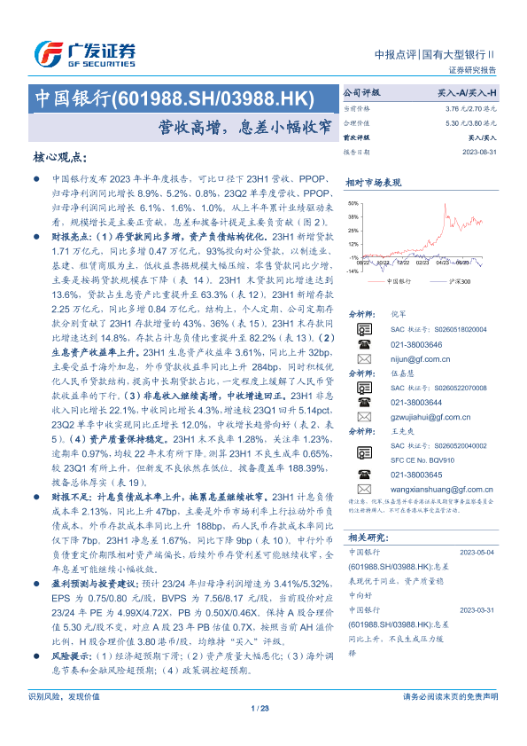 【广发证券】【20230831】中国银行(601988.SH/03988.HK):营收高增,息差小幅收窄-23页