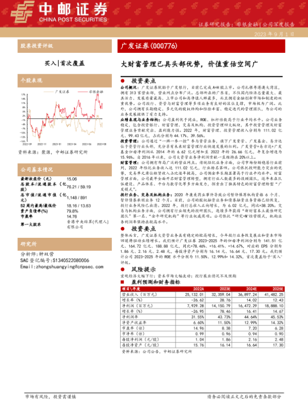 【中邮证券】【20230901】20230901-中邮证券-广发证券-000776.SZ-大财富管理已具头部优势,价值重估空间广-32页